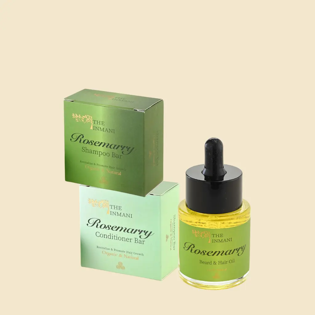 - Rosemary Hårolie – koncentreret hovedbundsolie med rosmarin, anvendt i små mængder som målrettet støtte til hårsække